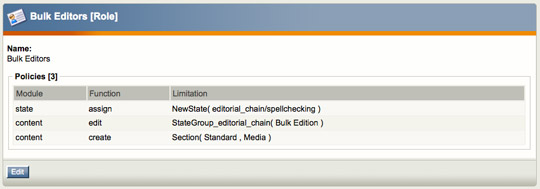 This role is assigned to the «Bulk Editors» group, and allows Brad, once he finished writing the initial text of a piece of news, to push it one step ahead to the Spell Checking phase (Stefan).
