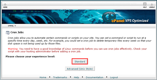We will walk you through the "Standard" method of setting up a cronjob. The details of a cronjob can then be specified as shown below.