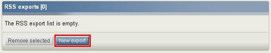 To create an RSS feed, first click the RSS link in the Setup tab. Then, click the New export button in the RSS exports window.