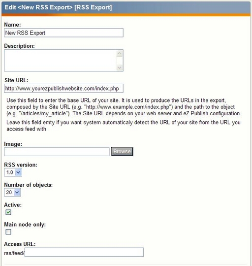 | Name | The name of the RSS feed to create / export. | “eZ Tennis Club News” |