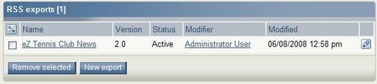 With the steps above completed, the RSS export will be available on your website and will be automatically updated whenever you add or modify content at the source location(s). You can check this by going to the URL for the RSS feed, such as http://www.eztennisclub.com/index.php/user_siteaccess/rss/feed/ez_tennis_club_news.
